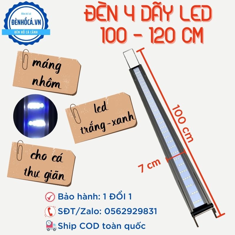 Đèn Hồ Cá 1m2 -1m4 máng nhôm ánh sáng trắng - xanh