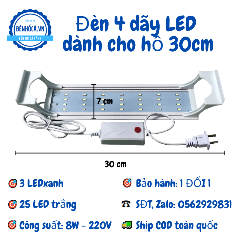 Đèn led 30cm loại 4 dãy dành cho hồ cá cảnh, hồ thủy sinh 30cm