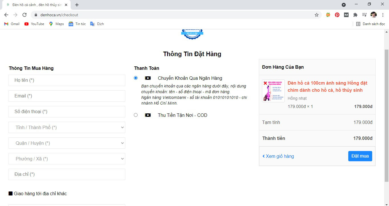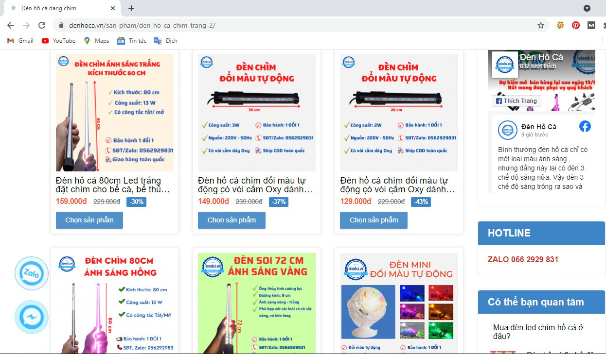 Trang website Đèn Hồ Cá có giao diện rõ ràng, thông tin đầy đủ. Bạn có thể đặt hàng trực tiếp trên Web hoặc liên hệ Zalo 0562929831 hay trang Fanpage https://www.facebook.com/denhoca/.