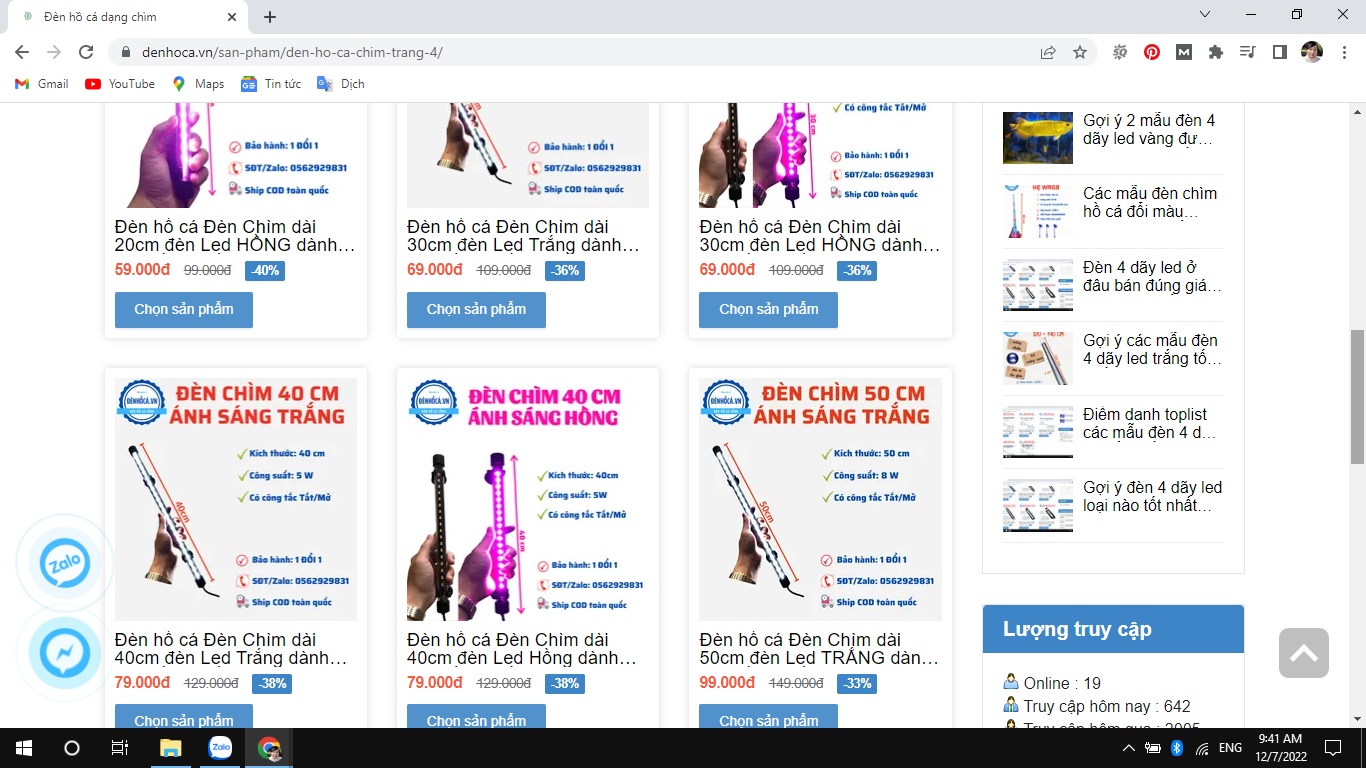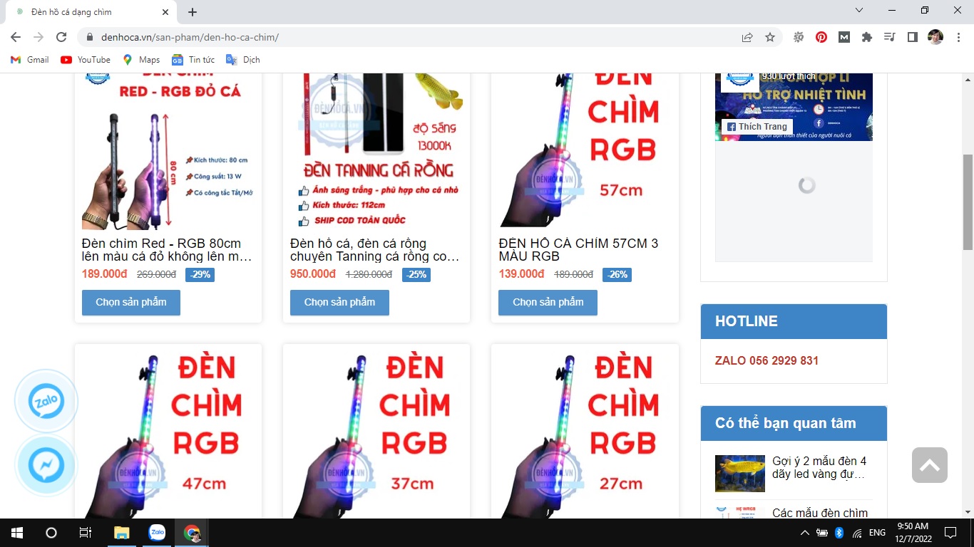Đèn chìm hồ cá bao nhiêu tiền tại Đèn Hồ Cá?