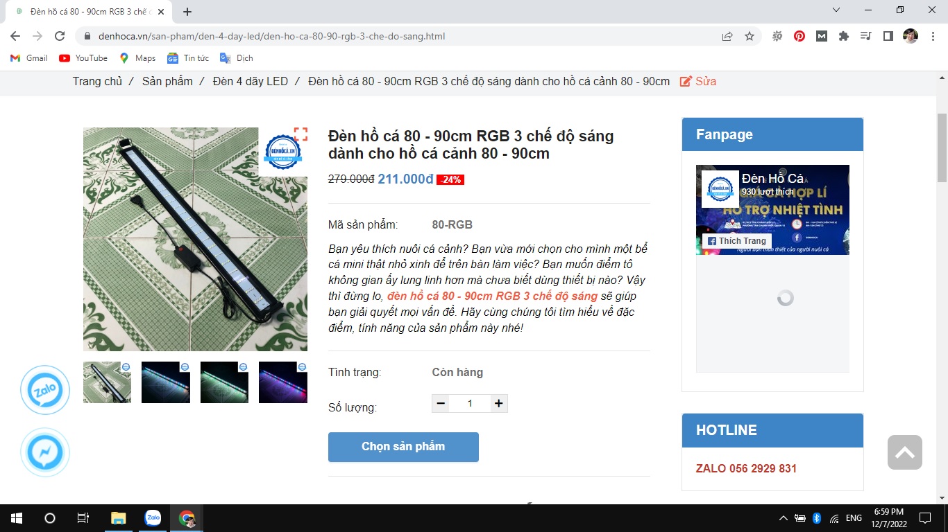 Hiện nay, đèn đang được bán với mức giá hấp dẫn, ưu đãi 35%, chỉ còn 109.000 đồng tại cửa hàng Đèn Hồ Cá.