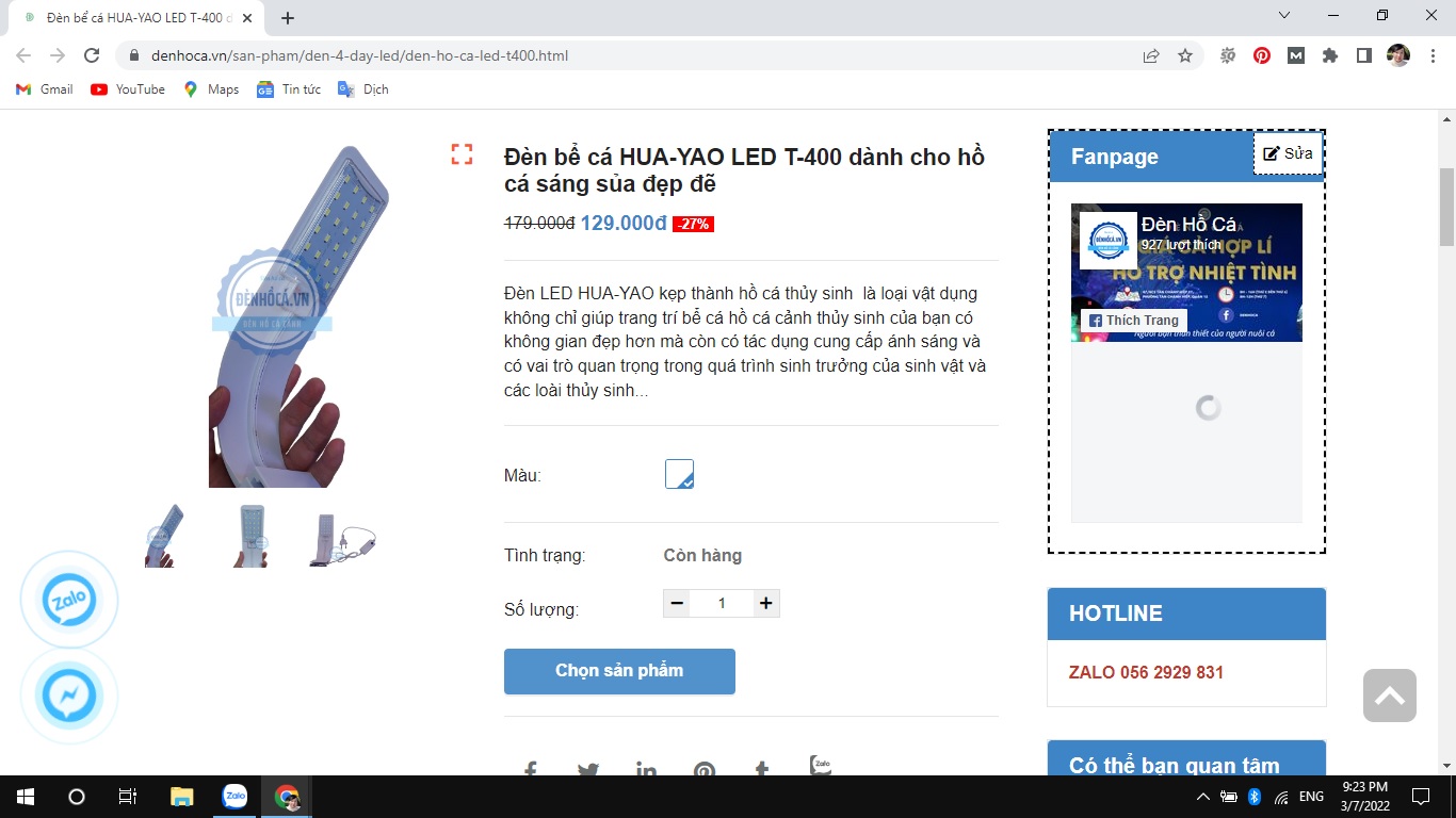 - Đèn bể cá HUA-YAO LED T-400 dành cho hồ cá sáng sủa đẹp đẽ: Giá bán chỉ 129.000đ.