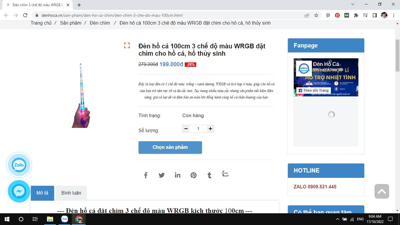 Một chiếc đèn đặt chìm trong bể cá sẽ khiến chiếc bể trở nên lung linh hơn. Hãy tham khảo ngay mẫu đèn 100cm 3 chế độ màu WRGB đặt chìm cho hồ cá, hồ thủy sinh đang giảm giá lên đến 28% tại Đèn Hồ Cá.