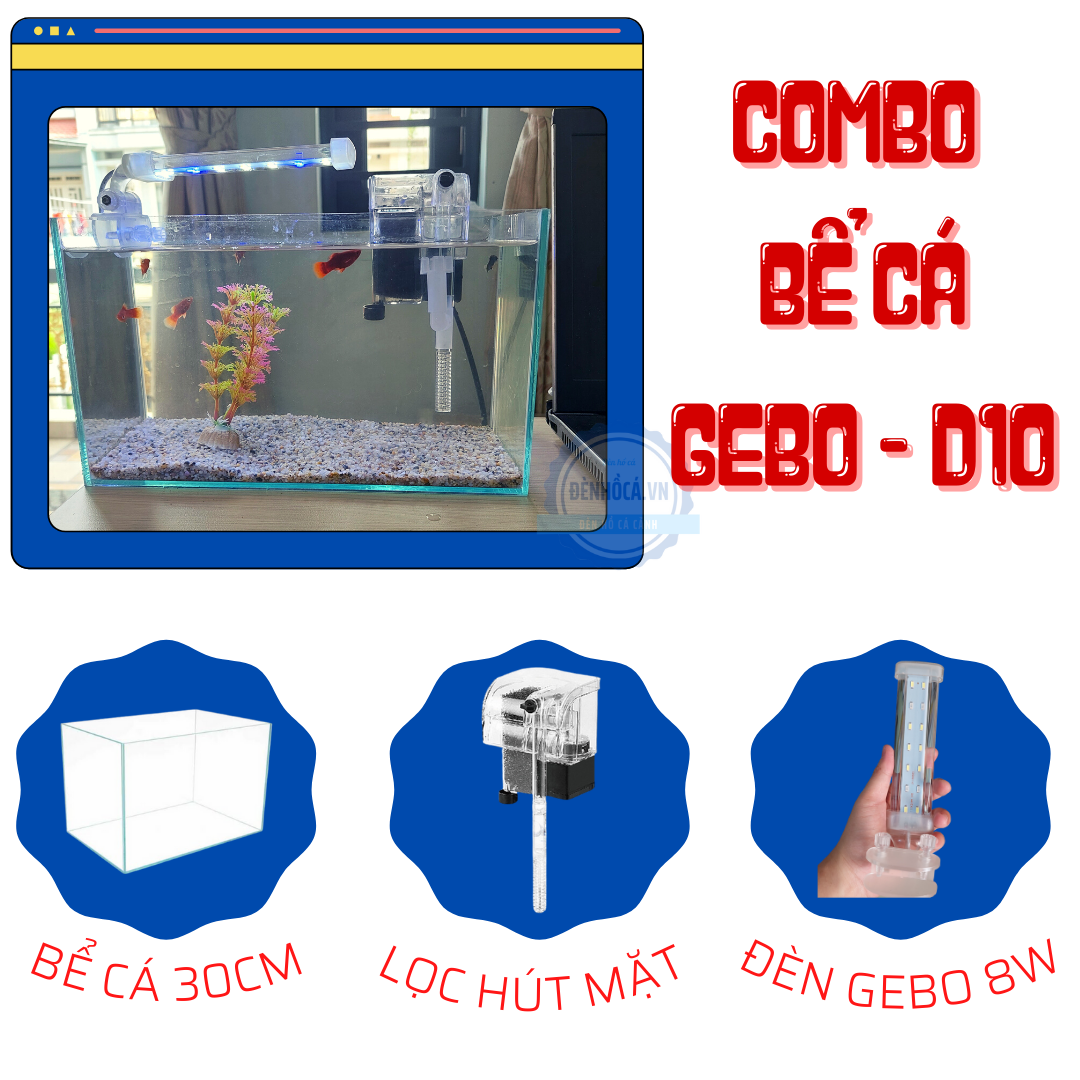 Hồ cá mini để bàn FULL COMBO GEBO - D10 đầy đủ hồ lọc đèn + KHUNG