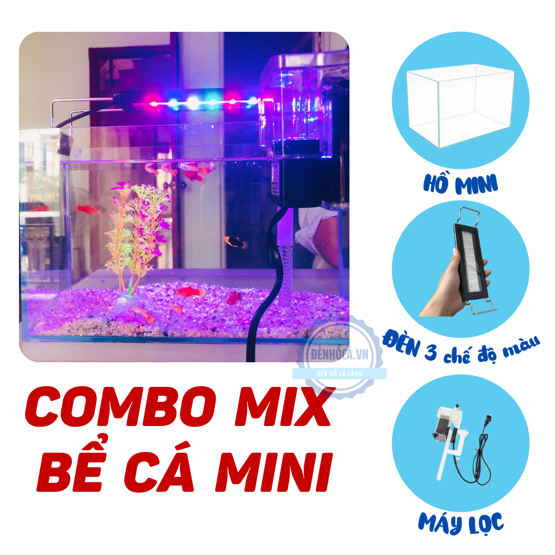 LƯU Ý : Bể kích thước mini nên thích hợp nuôi các loài cá cảnh nhỏ như : Cá 7 màu, cá bình tích, trân châu, hồng kim, cánh buồm ,... Nuôi các loài cá nhỏ sẽ phù hợp cho hồ và cá cũng có đủ không gian sống.