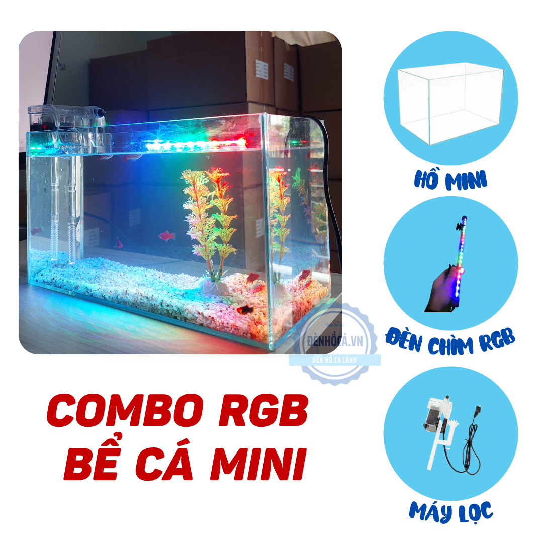 Hồ cá mini để bàn FULL COMBO C20 RGB đầy đủ hồ lọc đèn + KHUNG