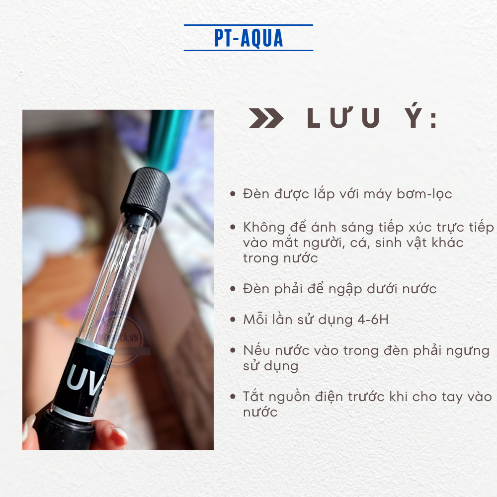 - Đèn được lắp với máy bơm ( máy lọc) . Nước sẽ chạy qua đèn, được khử khuẩn và đưa lên máng lọc, sau đó được trả xuống bể
