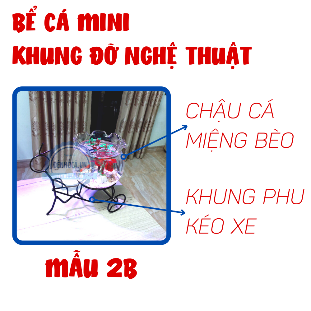 Bể cá mini miệng tai bèo mẫu 1-B để bàn kèm khung đỡ hình xe đạp đẹp mắt